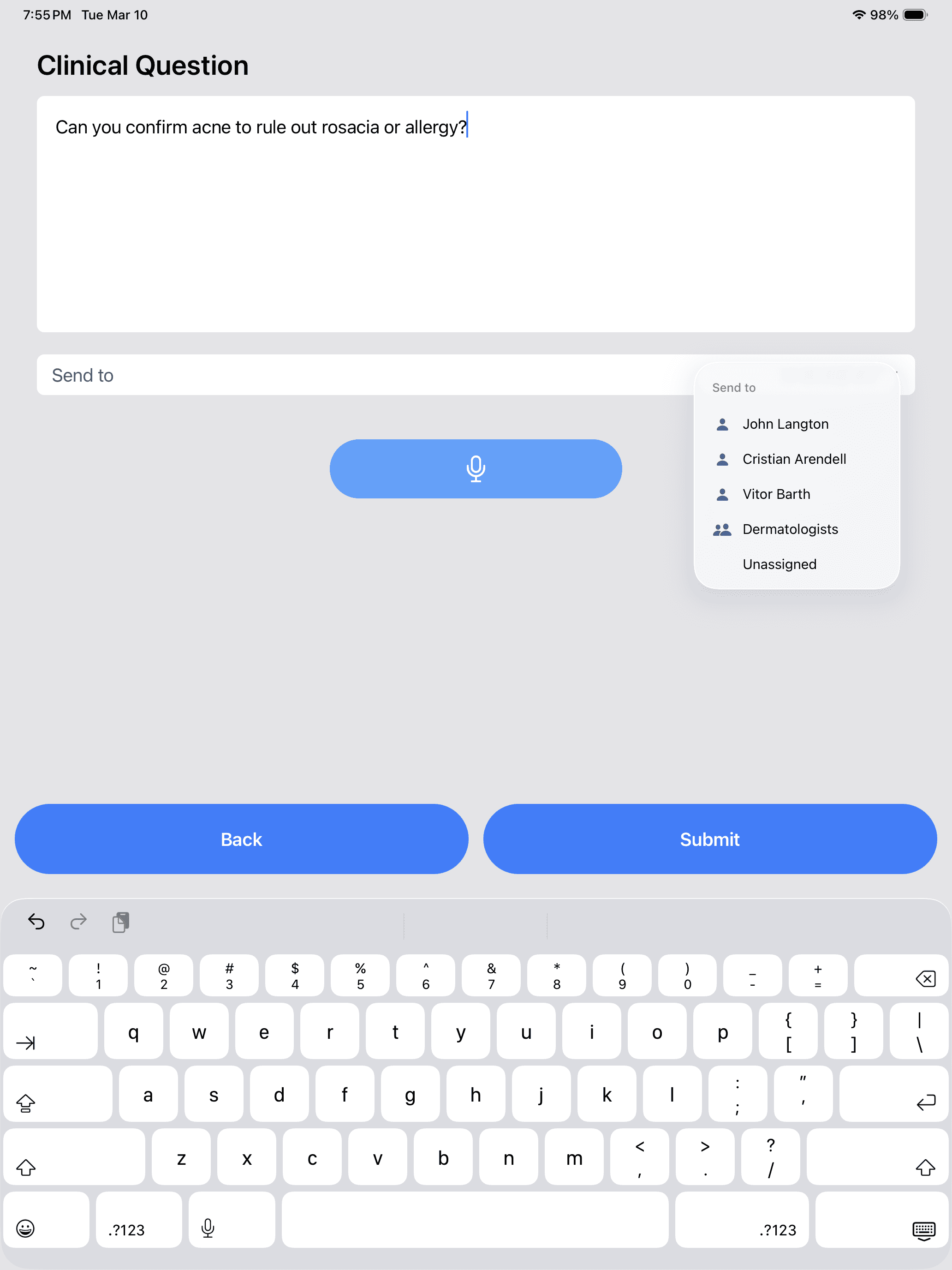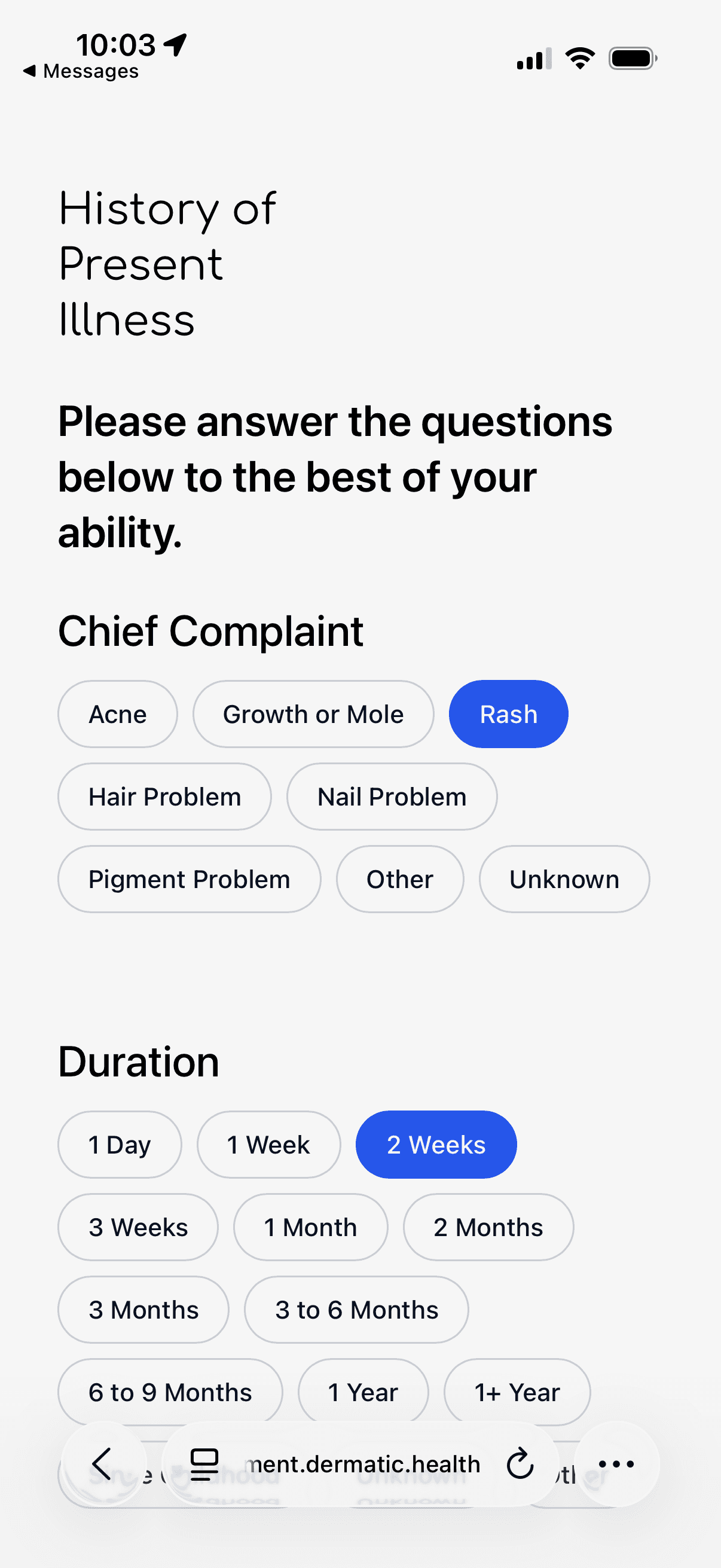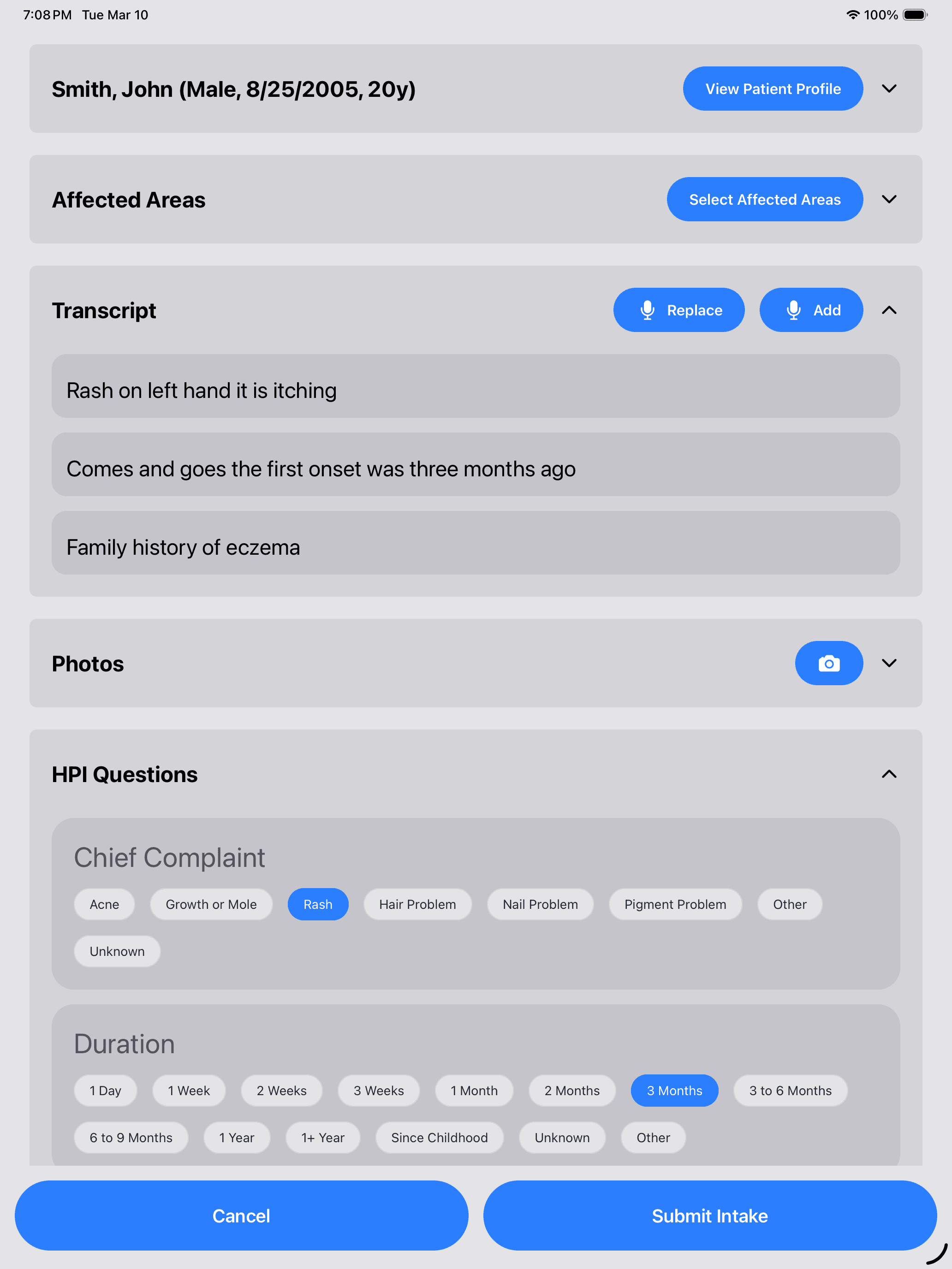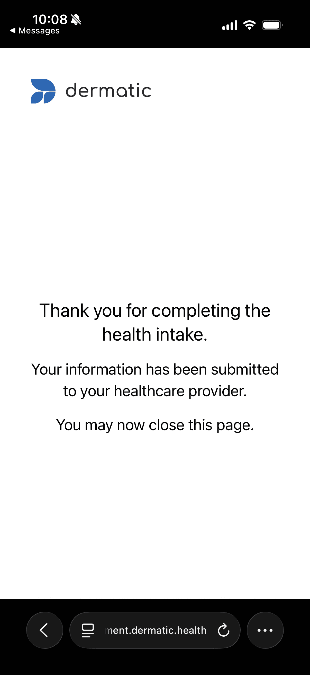 The resulting intake flows to the EHR and can also be viewed in the Dermatic app