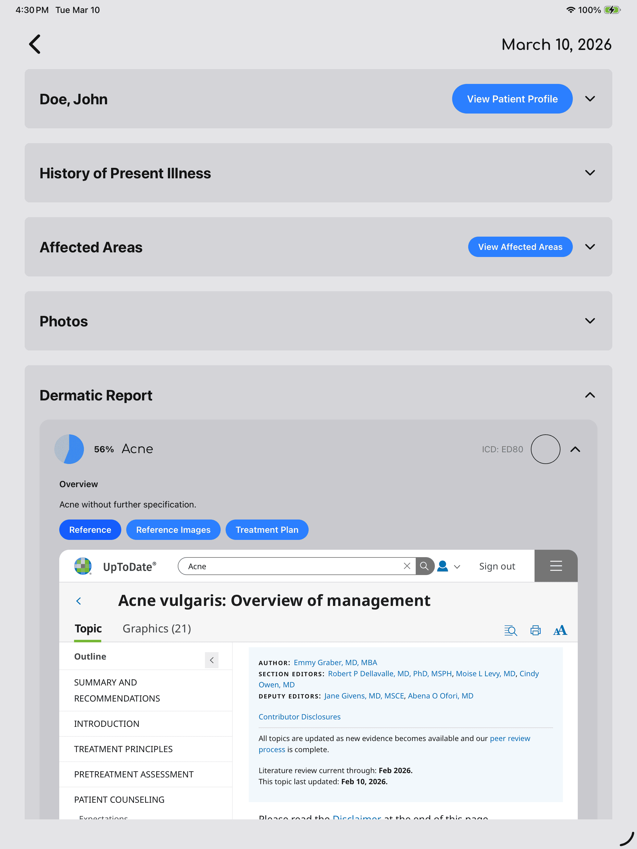 The Dermatic web app supports Smart on FHIR and can launch as an activity pane